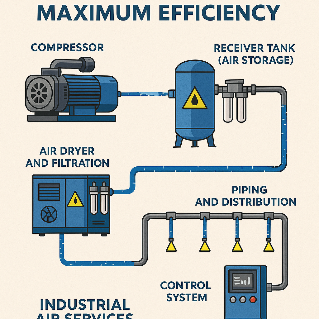 In this guide, we’ll explain what goes into an efficient compressed air system, common pitfalls to avoid, and how proper design can cut your energy bill by 30% or more.